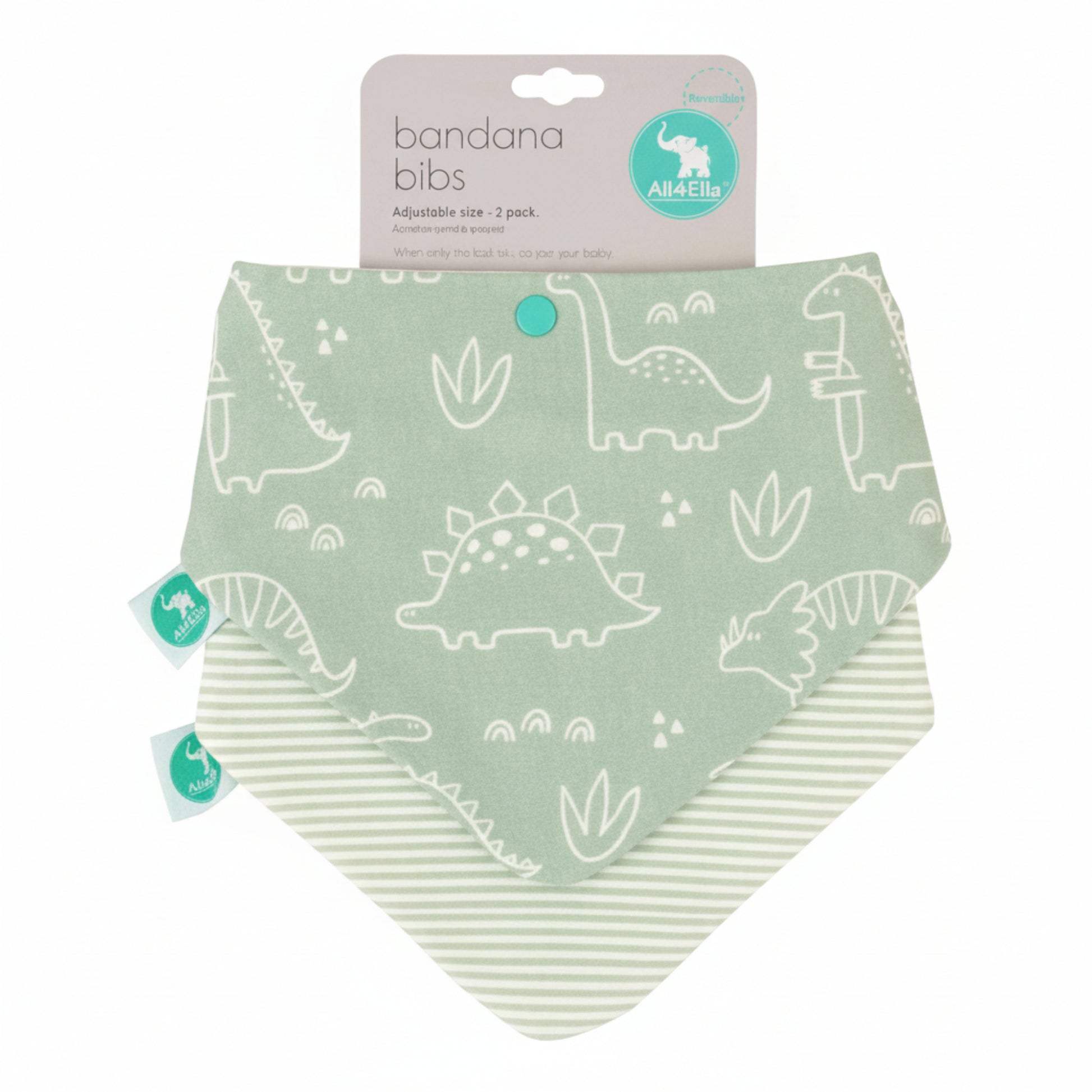Keep your baby looking cute while staying clean with the All4Ella Bandana Bibs 2-Pack. Designed to be both fashionable and practical, these bibs are perfect for mealtimes, drool, or everyday wear.